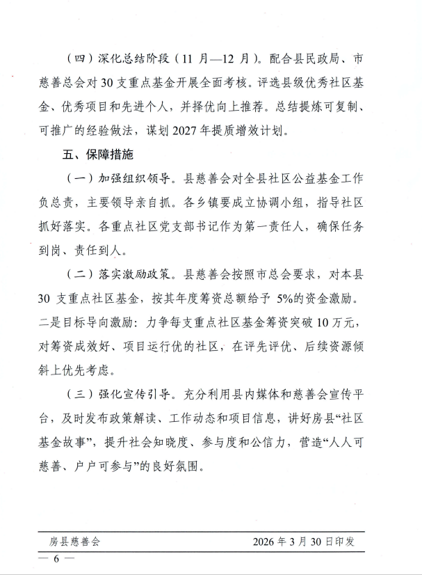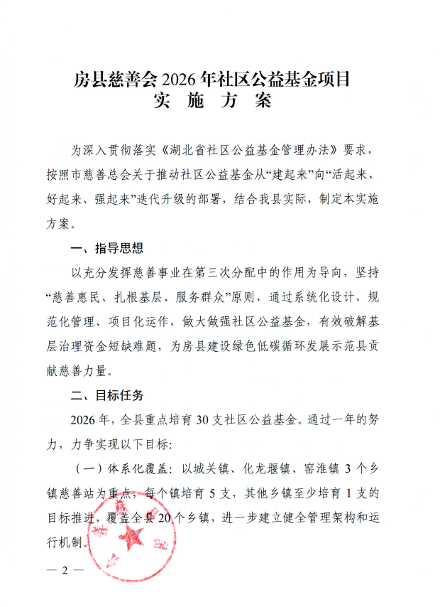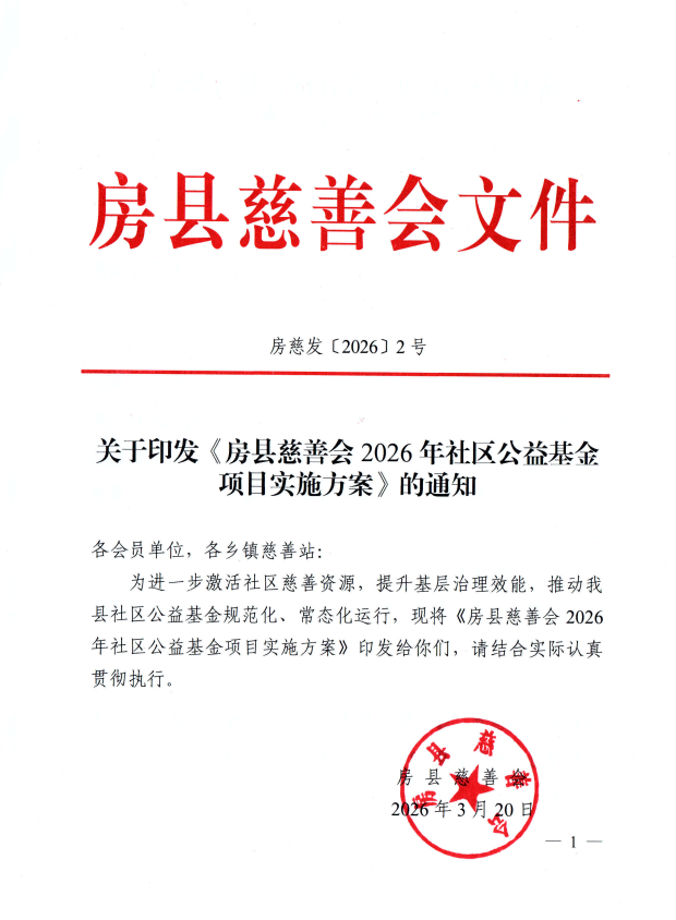 关于印发《房县慈善会2026年社区公益基金项目实施方案》的通知